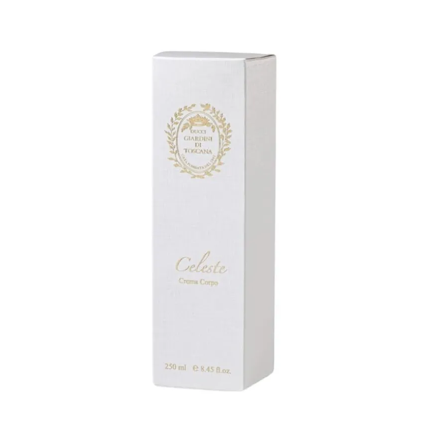 Celeste Body Cream er en fuktighetsgivende kroppskrem som gir næring til huden og etterlater den myk og velduftende. Denne luksuriøse kremen er beriket med en delikat duft av sitrus og fioliris, som gir en frisk og ren følelse. Den passer for alle hudtyper og kan brukes alene eller før påføring av Celeste Eau De Parfum for å intensivere duften og gjøre huden fløyelsmyk og silkeglatt.