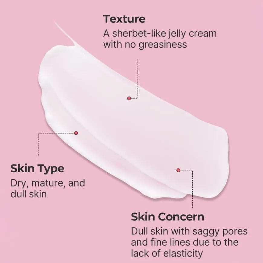 - Forbedrer hudens elastisitet, minsker porer, og gjør linjer og rynker mindre synlige.