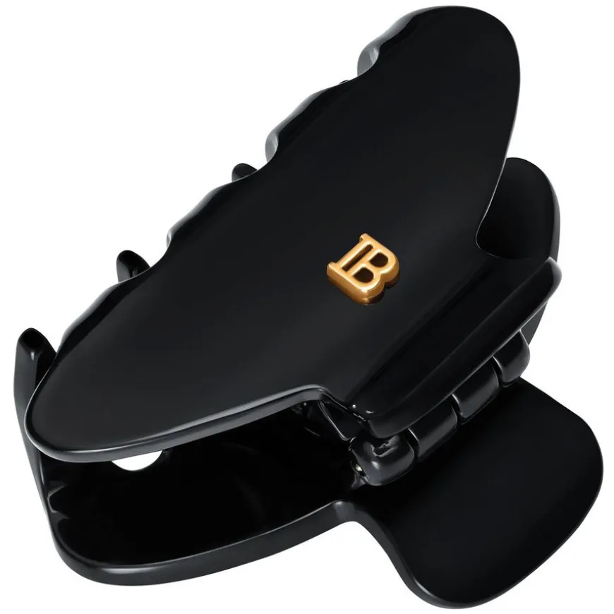 Cellulose Acetate Pince À Cheveux Small Hairclip er enliten håndlaget klo-klips laget av slitesterk celluloseacetat og designet med Balmains signatur 14K gullbelagte «B» -logo. Det ekstremt sterke, men fleksible materialet er allergivennlig og skånsomt for hår og hodebunn. Den lille hårklemmen er perfekt for tynt, fint hår og kan lett feie løse lokker ut av ansiktet.