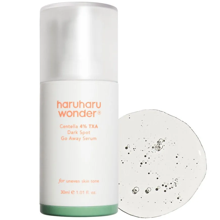 Centella 4% TXA Dark Spot Go Away Serum er ett serum formulert med en spesiell trippelvirkende formel som behandler og forebygger hyperpigmentering og mørke flekker fra innsiden og ut. Traneksaminsyre og antioksidantrike patenterte pearin fra miljøvennlige oppsirkulerte babypærer reduserer eksisterende mørke flekker og forhindrer dannelsen av de aller første mørke flekkene dypt i huden. Tilsetningen av vitamin C og niacinamid virker i samspill med traneksaminsyre for å redusere mørke flekker og forhindre dannelsen av overskuddsmelanin, samt gi antioksidant-, antialdring- og utjevnede effekter. Med en formel som er egnet for alle hudtyper, inkludert sensitiv hud, kan alle avdekke og opprettholde lys og jevn hud, og si farvel til mørke flekker og hyperpigmentering.