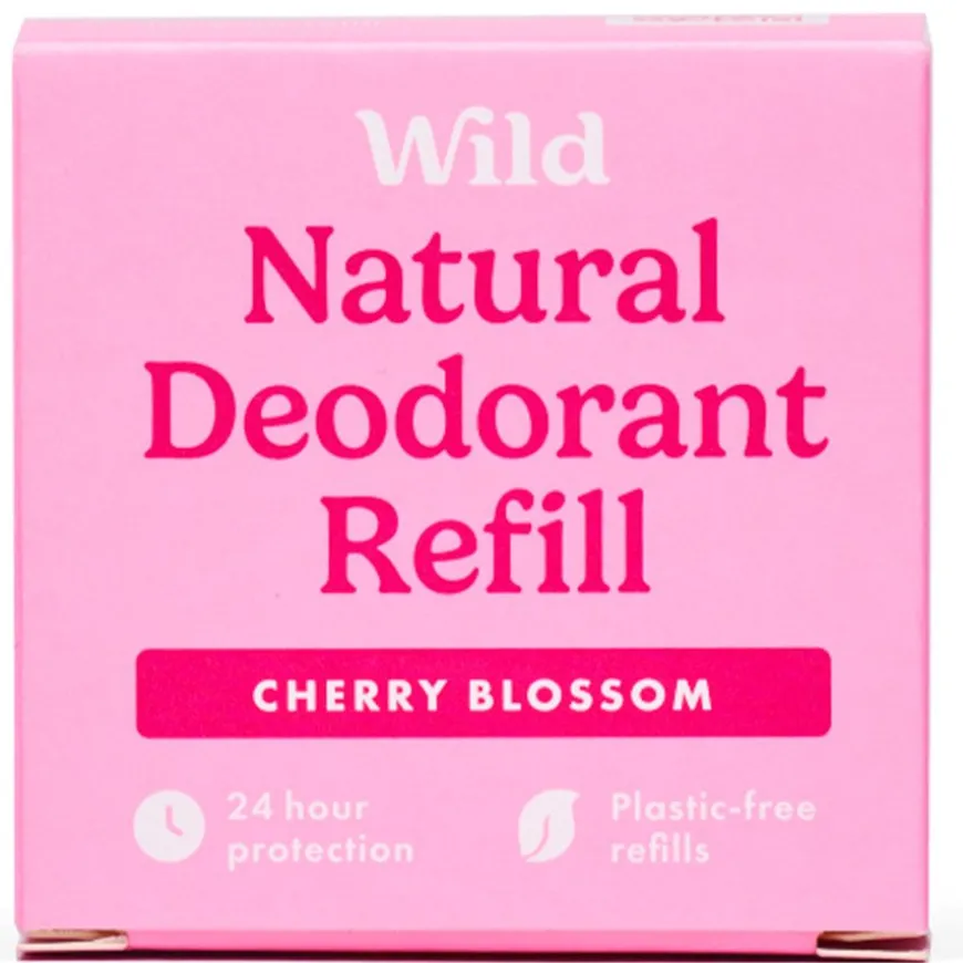 Wild Cherry Blossom er en naturlig deodorant-refill til Wild aluminiumsetui. Refillen er 100 % plastfri og kan kastes i papiravfallet. Deodoranten inneholder pleiende og effektive ingredienser som gir 24-timers dokumentert beskyttelse mot vond lukt. Inneholder ikke aluminiumklorid. Wild hemmer ikke svetteproduksjonen, men dreper bakteriene som gjør at man lukter. Holder deg tørr og velluktende gjennom dagen. Sertifisert vegansk og Cruelty free. Inneholder ikke aluminiumklorid. Nydelig duft med de myke notene av kirsebærblomstblader, akkompagnert av subtile hint av søt mandel og vanilje.