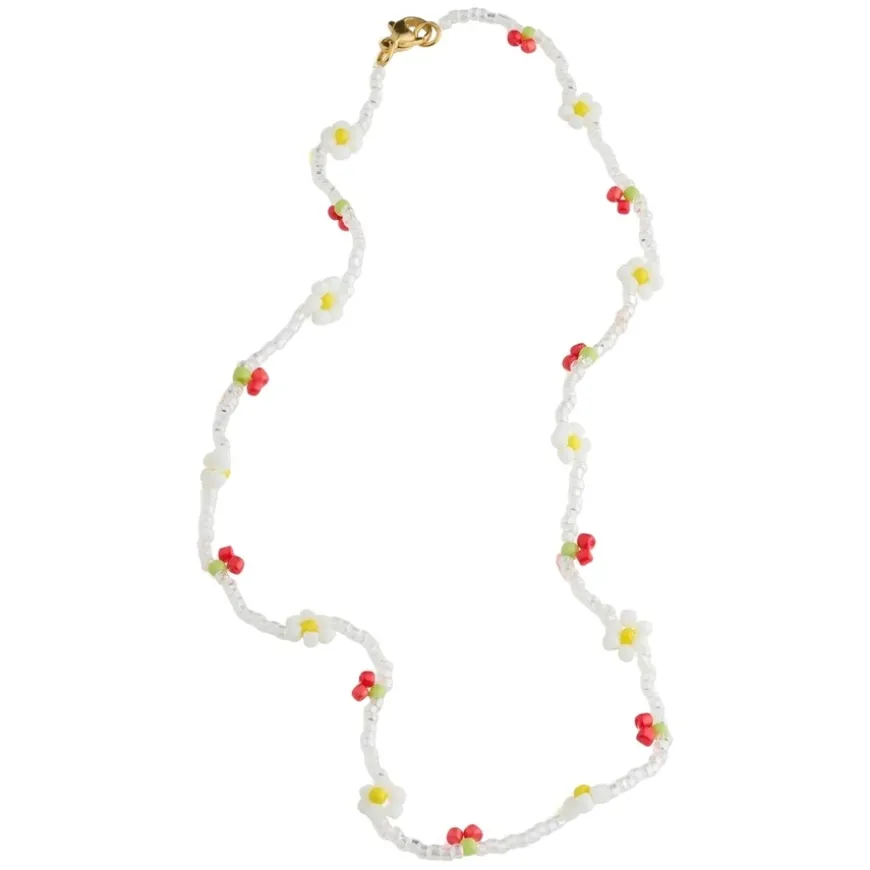 Cherry & Flower Bead Necklace fra Lovis er et lekent og sommerlig halskjede med små kirsebær og blomsterperler i et fargerikt design. Søt møter finurlig i dette tilbehøret som sprer glede og letthet, og gir en umiddelbar sommerstemning til ethvert antrekk. Halskjedet er laget av rustfritt stål med vanntett belegg og har en 5cm forlenger for justerbar lengde. Perfekt for deg som elsker farger og leken stil.
