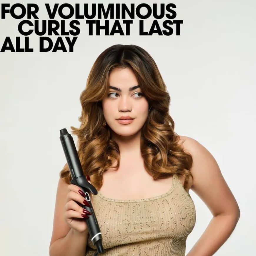 Chronos Curve Grand Tong fra ghd er utviklet med en ekstra bred 32 mm sylinder og Curl-Responsive™-teknologi for å skape store, myke krøller med profesjonell presisjon. Den ergonomiske spaken gir deg full kontroll under styling, mens teknologien sørger for krusfrie resultater og 50 % mer glans – helt uten varmeskade.