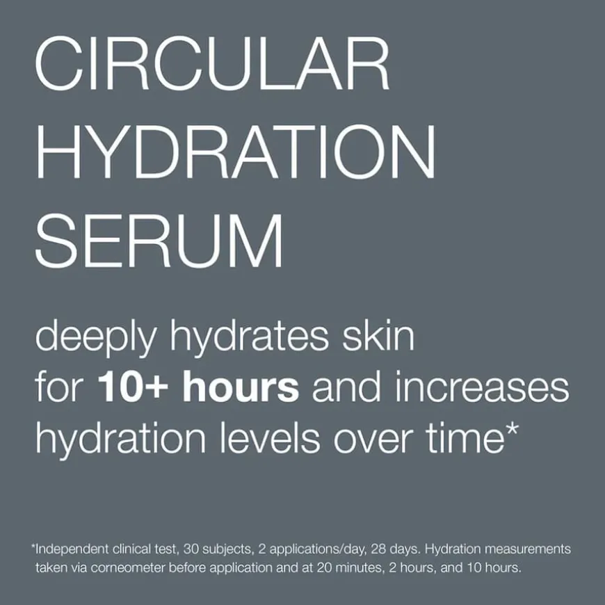 Circular Hydration Serum er et langtidsvirkende fuktighetsserum som umiddelbart tilfører intens fuktighet til huden, etterfyller fuktighet innenfra og forebygger fremtidig tap av fuktighet. Hyaluronsyre og organisk silisium penetrerer hudoverflaten for dyp fuktighet og gir jevn, glødende hud over tid. Algeekstrakt med et avansert fuktighetskompleks gir hurtig- og langtidsvirkende fuktighet til huden. Polyglutaminsyre fra fermenterte soyabønner etterfyller hudens fuktighetsreserver innenfra og hjelper dermed huden med å holde på fuktigheten.