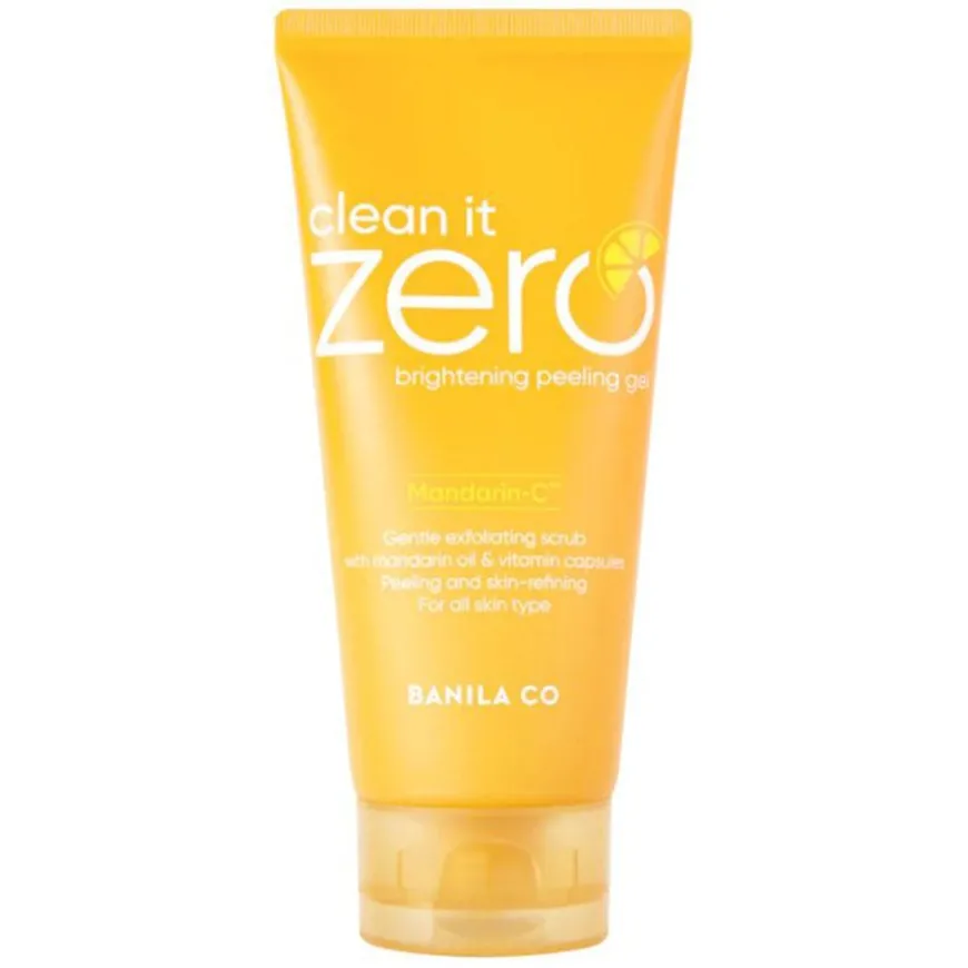 Clean it Zero Brightening Peeling Gel er en hypoallergenisk behandling som er utviklet for å eksfoliere, jevne og hydrere alle hudtyper med kun ett steg. Nøkkelingrediensen er Mandarin Orange-ekstrakt som hjelper til med å jevne ut, mykne og hydrere huden og etterlate den med en frisk glød. Alle hudtyper kan bruke den. Den er spesielt god til deg med gusten hud, hvis du opplever at sminken får en kakete finish eller for hud med tette porer som trenger en dyprens.
