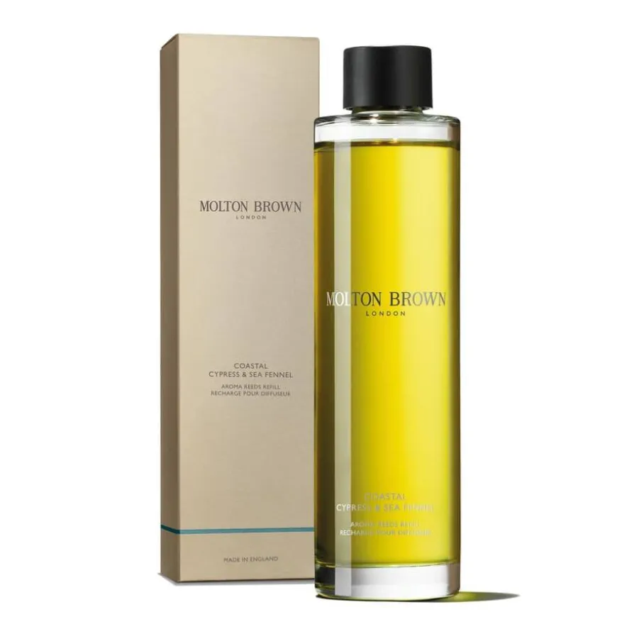 Med Molton Brown Coastal Cypress & Sea Fennel Aroma Reeds Refill kan du fylle på oljen til dine duftpinner og fortsette å nyte denne havinspirerte duften av oppfriskende sypress, friske marine noter og kjølige krydder. Molton Browns duftpinner er elegante interiørdetaljer som sprer en symfoni av innbydende dufter i ditt hjem. Forhøy duftopplevelsen i ditt hjem ytterligere ved å kombinere med Molton Browns matchende duftlys.