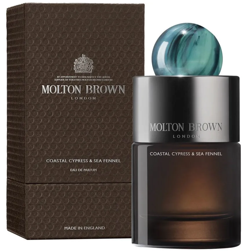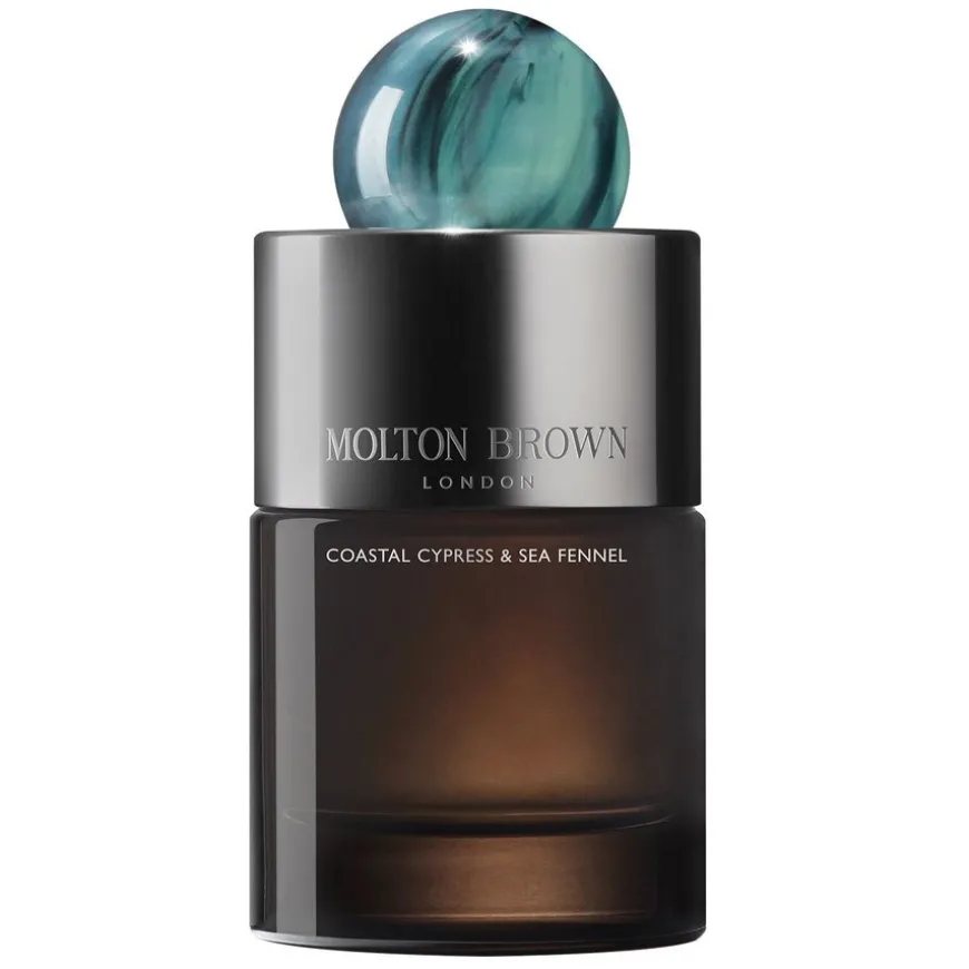 Molton Brown Coastal Cypress & Sea Fennel Eau de Parfum er en frisk, havinspirert Eau de Parfum. Den åpner med aromatiske toner av fikenblad og ingefær, som går over i et hjerte av marine noter og jasmin, før den avsluttes med en dyp og fyldig lærbase. Leveres i en vakker, samlervennlig glassflaske med en unik, sfærisk kork.