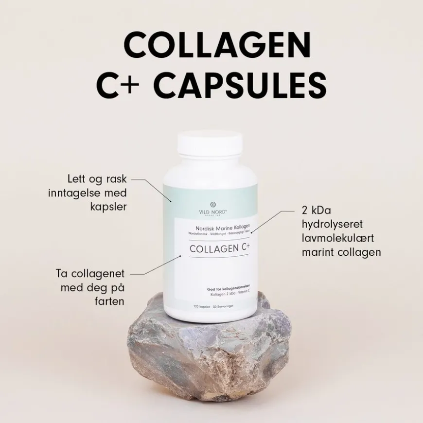 Hvis kollagenpulver ikke er noe for deg, er Collagen C+ Capsules det perfekte alternativet for å få i deg daglig kollagen og vitamin C på en enkel måte.