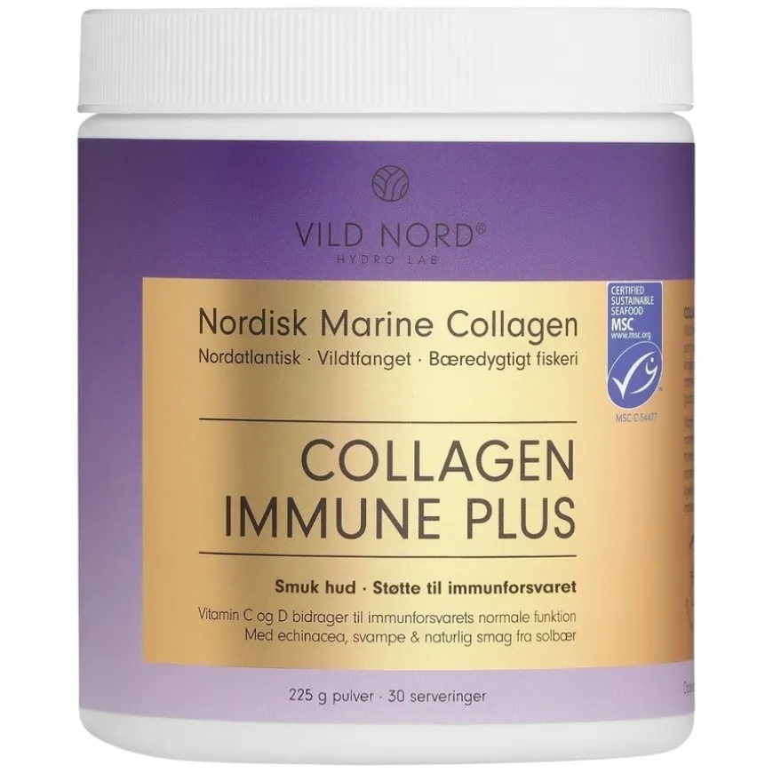 Collagen Immune Plus er et naturlig kollagentilskudd som støtter både huden, beinstrukturen og immunsystemet ditt. Dette unike kollagentilskuddet inneholder echinacea, vitamin C og D, utvunnet fra bær og sopp, og gir en effektiv «inner-beauty» formel full av naturlige antioksidanter.