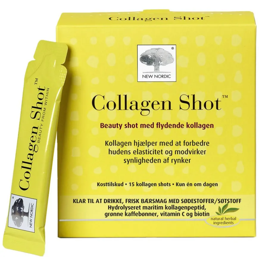Collagen Shot™ er en førsteklasses flytende shot med kollagen. Den er designet for å være en del av din daglige skjønnhetsrutine. De drikkeklare porsjonspakkene har en frisk smak av bær. Kollagen hjelper med å forbedre hudens elastisitet og minsker synligheten av rynker.