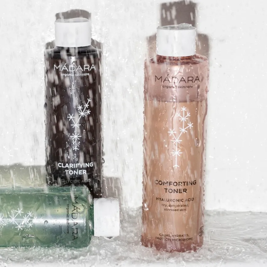 Comforting Toner er en fuktighetsgivende og trøstende essensen som lindrer og beroliger sensitiv, tørr og stram hud øyeblikkelig. Den pH-balanserende formelen med beroligende blomstervann av kornblomst og rose, kamilleekstrakt og hudidentiske naturlige fuktighetsgivende ingredienser gjør at huden ser glatt ut og føles myk, frisk og mett. Forhindrer hudirritasjon.