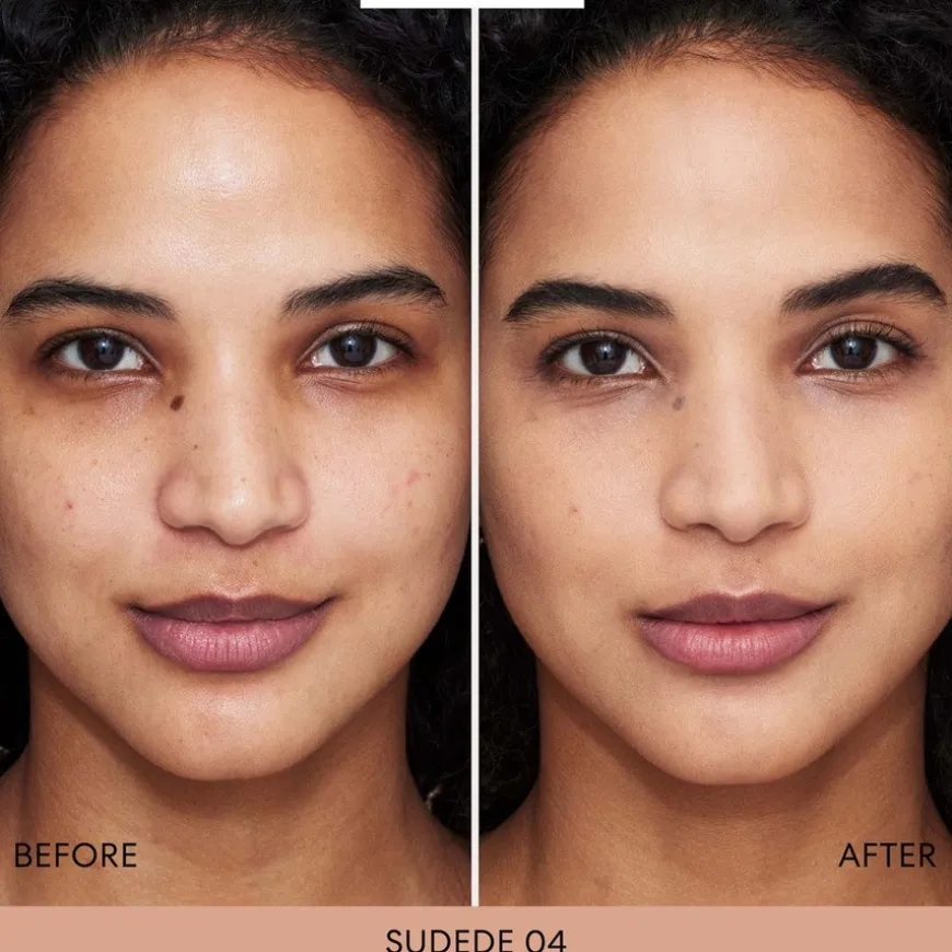 - For å bygge opp dekning der det er nødvendig, trykk en liten mengde produkt på med fingertuppene.