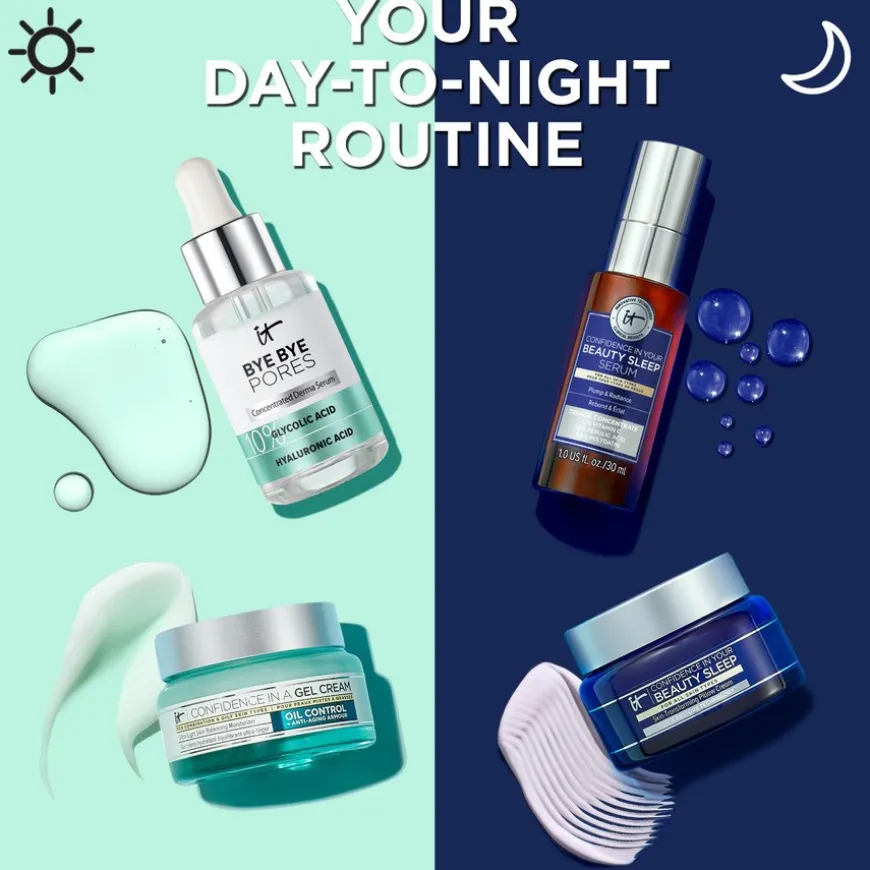 Confidence In A Gel Cream Oil Control er en oljefri fuktighetskrem fra It Cosmetics som gir kontroll over fet hud og gir selvtilliten et løft. Confidence In A Gel Cream Oil Control er din fuktighetsgivende, oljefrie fuktighetskrem for kombinert og fet hud. Få kontroll over fet hud med en ultralett krem som minimerer blank hud, reduserer porer, korrigerer ujevn hudtekstur og fukter huden i samme produkt. Laget med tanke på din unike hud, din daglige ikke-komedogene fuktighetskrem løser de viktigste tegnene på fet hud, inkludert forbedring av store porer og hudteksturen over tid.
