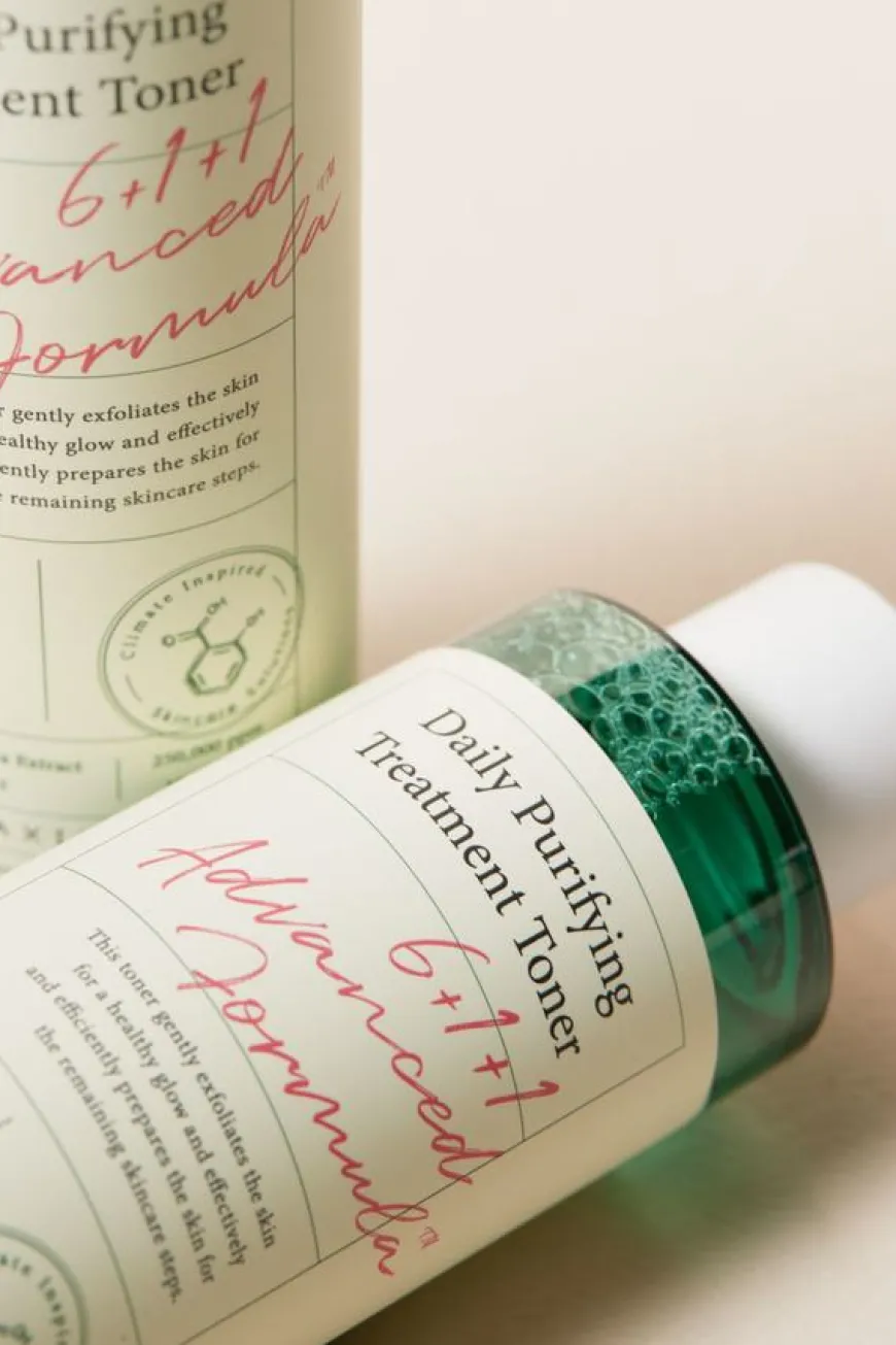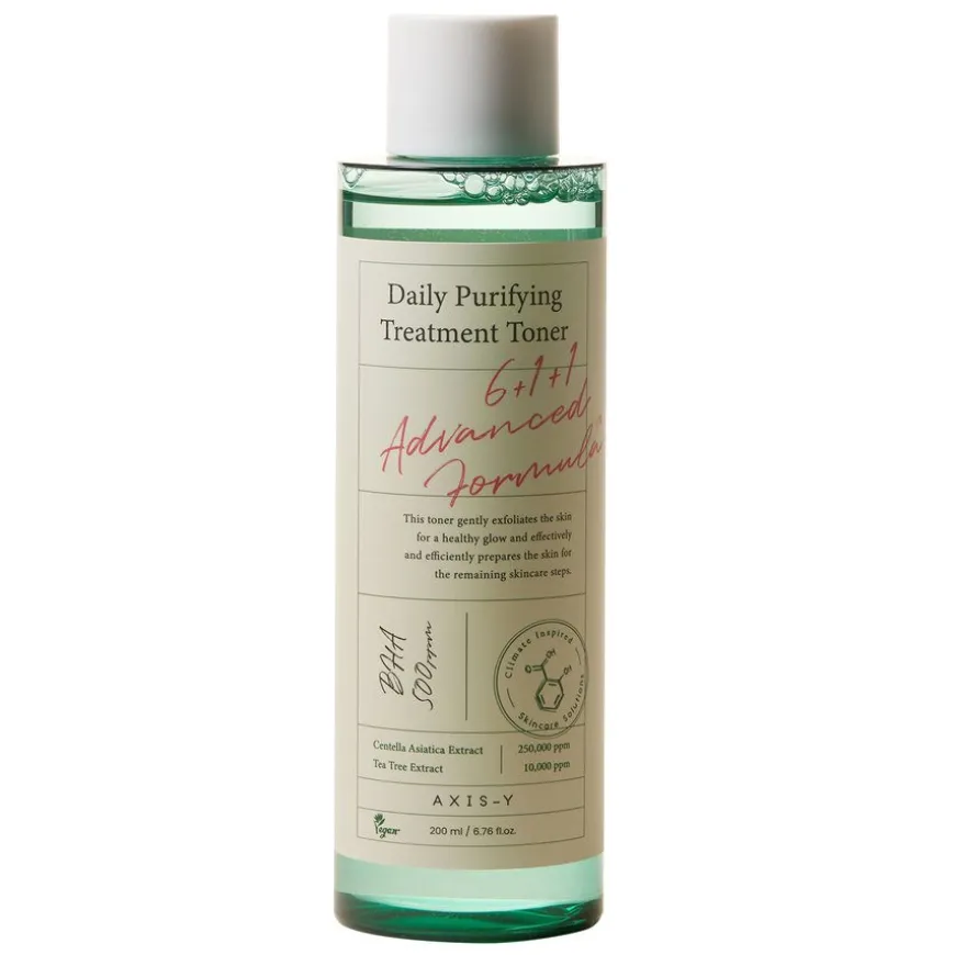 Daily Purifying Treatment Toner renser effektivt ut bakterier og forurensning som sitter dypt i porene for å rense huden og redusere irritasjon og akne. Den nye og forbedrede formelen inneholder nå en høyere mengde AHA og PHA for skånsom kjemisk eksfoliering, samt en høyere mengde Centella Asiatica for økt beroligende effekt. Daily Purifying Treatment Toner inneholder 0,5% salisylsyre som kan trenge gjennom lag av talg og døde hudceller for å behandle huden fra dypet, og gi en klarere og sunnere hudtone.