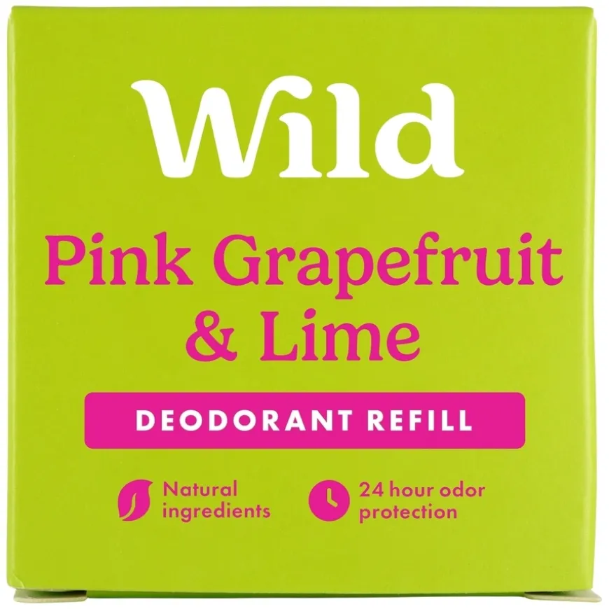 Deo Refill Pink Grapefruit & Lime er en naturlig deodorant-refill til Wild aluminiumsetui. Refillen er 100 % plastfri og kan kastes i papiravfallet. Deodoranten inneholder pleiende og effektive ingredienser som gir 24-timers dokumentert beskyttelse mot vond lukt. Inneholder ikke aluminiumklorid. Wild hemmer ikke svetteproduksjonen, men dreper bakteriene som gjør at man lukter. Holder deg tørr og velluktende gjennom dagen. Sertifisert vegansk og cruelty free. Inneholder ikke aluminiumklorid. Deodoranten har en frisk og sprudlende duft med en energisk kombinasjon av søt-syrlig grapefrukt og syrlig lime.