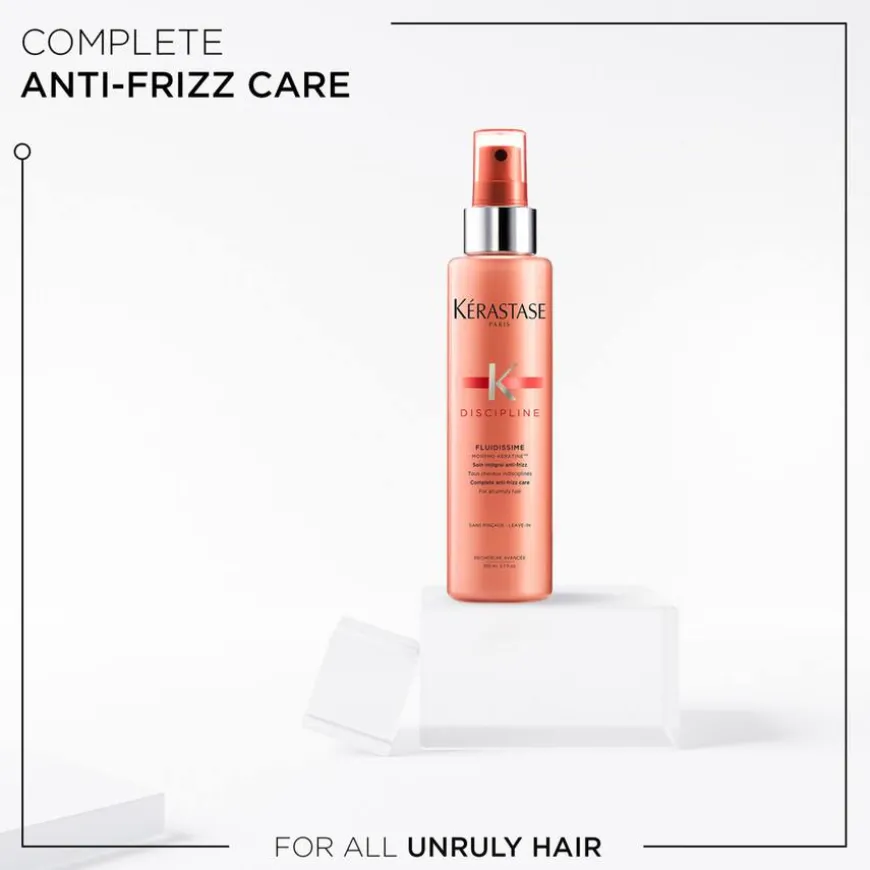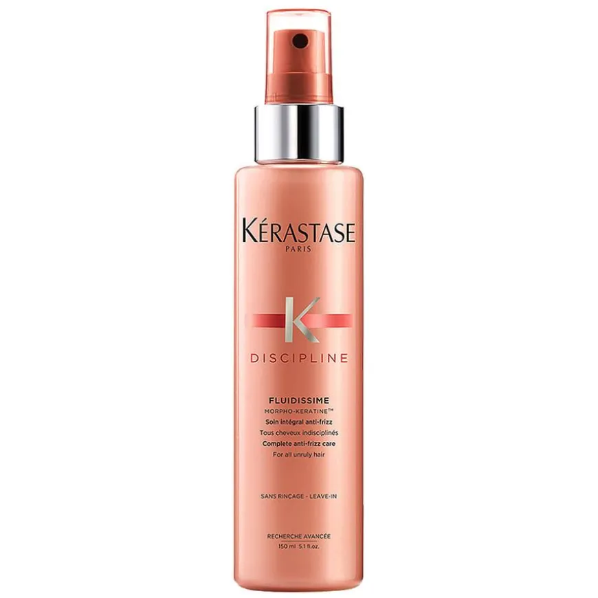Kérastase Discipline Fluidissime Complete Anti-Frizz Care leave In Spray er en pleiende leave-in spray som er perfekt å bruke før varmebehandling av håret, som for eksempel rettetang, hårføner osv. Sprayen inneholder anti-frizz effekter som gjør at den gir kontroll over uregjerlig hår og vil gjøre det lettere å style håret, samt at den tilfører rikelig med glans og kontroll. Den er egnet for farget hår og behøver ikke skylles ut.