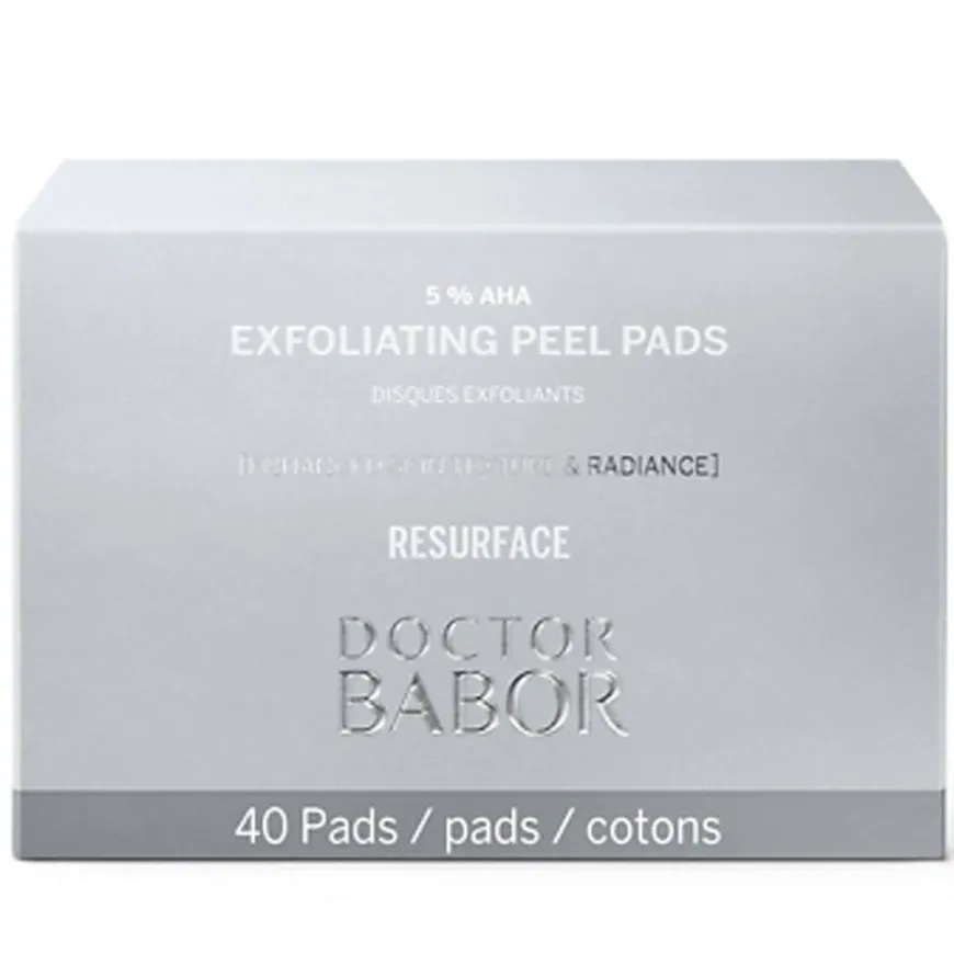 Resurface Exfoliating Peel Pads med fruktsyrer, som er designet for å redusere synligheten av forstørrede porer, rynker og linjer og for økt glød. Glykolsyre, sitronsyre og melkesyre fjerner effektivt døde hudceller, noe som bidrar til å forbedre hudens struktur. Resultatet: En jevnere og klarere hudfarge.