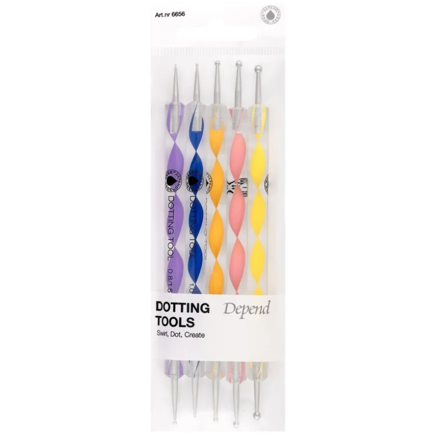 Dotting Tools er et praktisk sett med fem verktøy i seks forskjellige størrelser fra 0,8 mm til 3,0 mm – ideelt for å lage alt fra små prikker til mer avanserte negledesign og detaljer. Enten du er nybegynner eller profesjonell, gir disse verktøyene deg full kontroll over uttrykket ditt. Verktøyene er laget i lettvektsmateriale som gir høy presisjon og komfort under bruk. Passer utmerket for både naturlige negler og kunstnegler, og kan brukes med neglelakk, gel, akryl eller dekor.