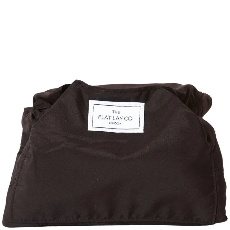 Drawstring Flat Lay Makeup Bag fra The Flat Lay Co. er den ultimate sminkemappen for deg som ønsker oversikt og effektivitet. Vesken åpnes helt flatt på sekunder, slik at du enkelt kan se og få tak i alt du trenger – uten rot og graving. Den er laget i luksuriøs rosa fløyel og har en praktisk snørelukking, åtte elastiske børsteholdere, en innvendig glidelåslomme for småsaker og to store ytterlommer med borrelås. En praktisk bærehank gjør den enkel å ta med seg. Mappen beskytter sminken din mot skitne overflater og kan enkelt foldes sammen og lukkes med snøring. Perfekt til reise, baderom eller raske touch-ups i løpet av dagen.