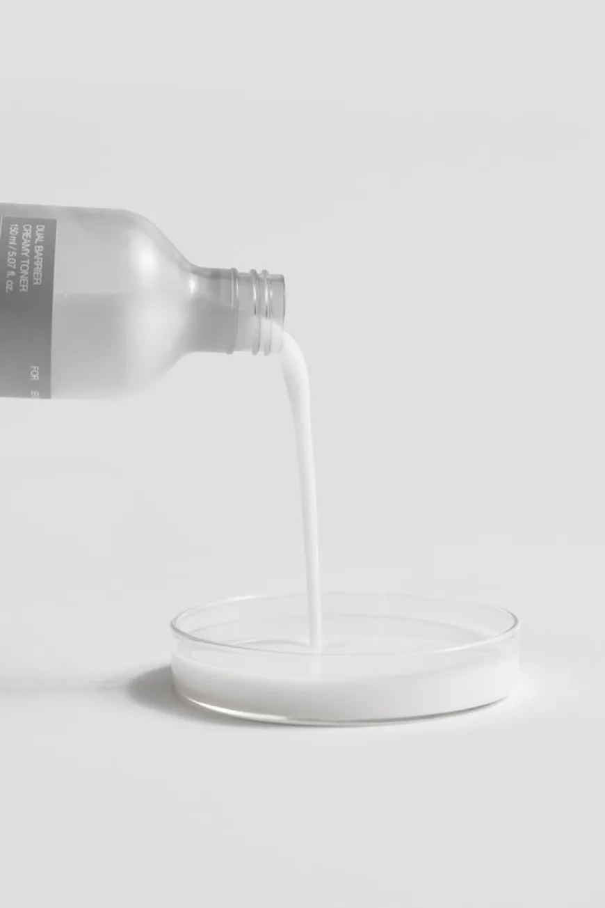 Dual Barrier Creamy Toner er en essens-lignende, milky toner som er designet for ekstremt tørr og sensitiv hud.