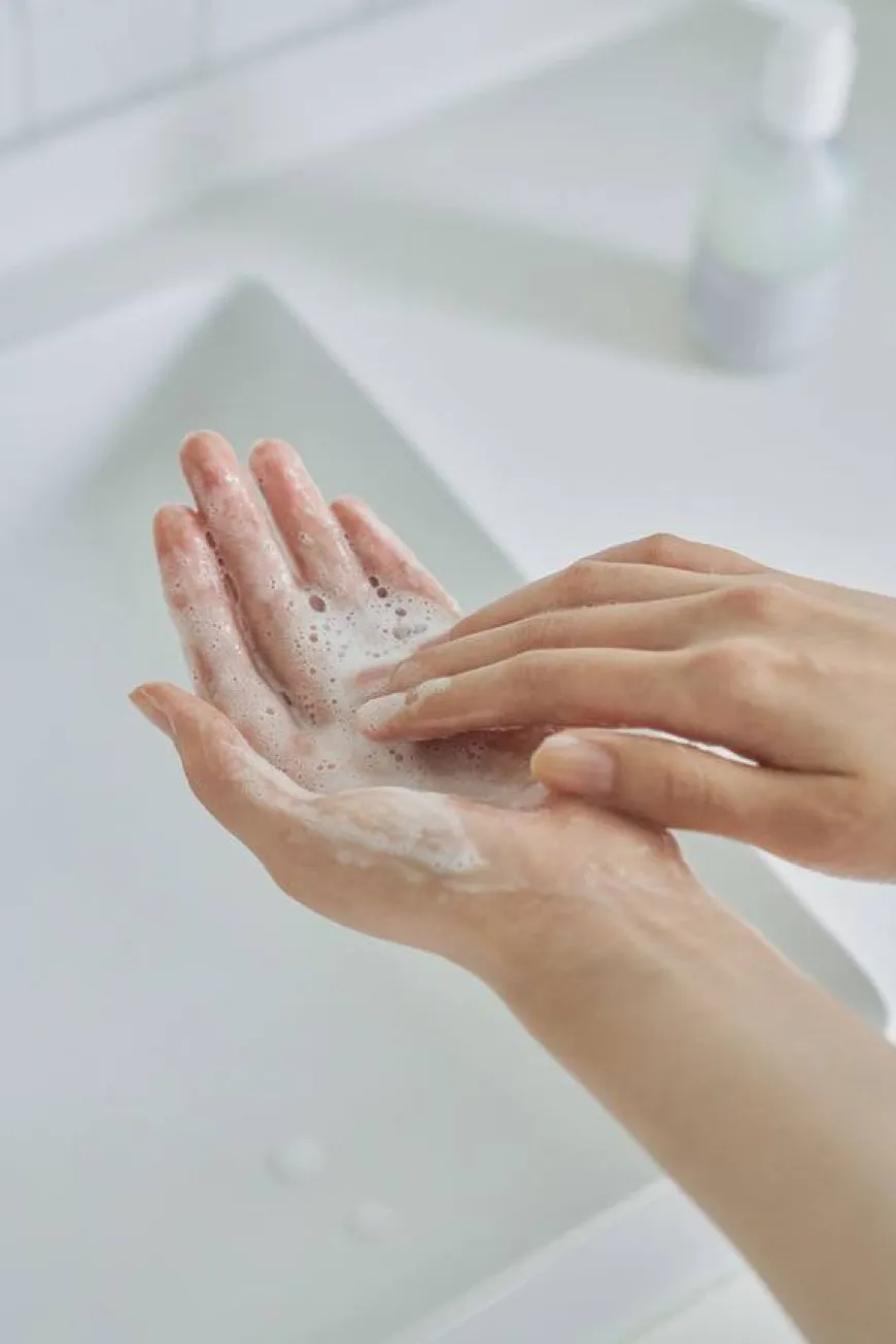 - Pump i håndflaten, tilsett lunkent vann og jobb opp et skum.
