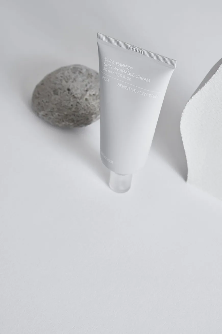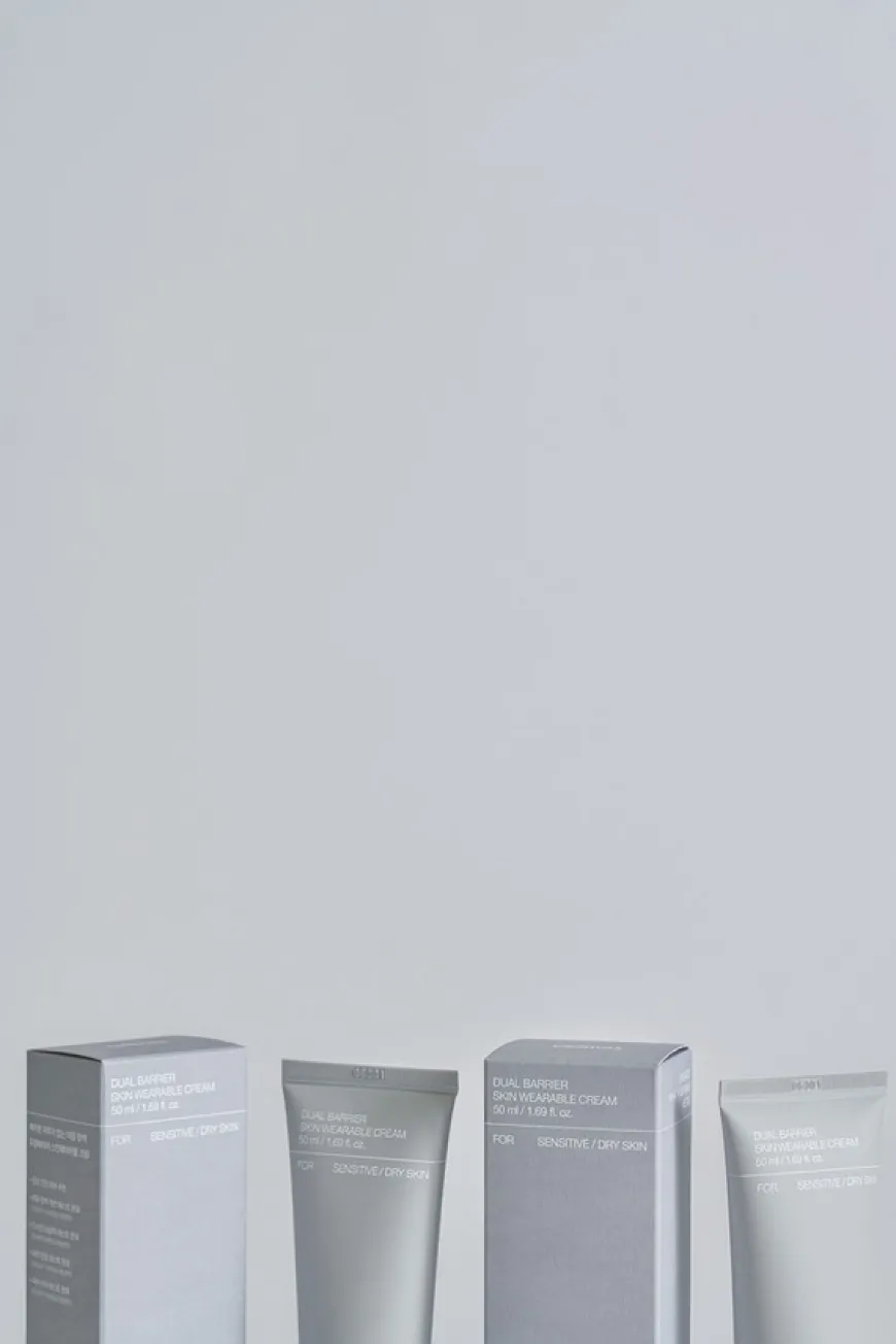 Dual Barrier Skin Wearable Cream er en ultrahydrerende fuktighetskrem som gir umiddelbar lindring for tørr hud, samtidig som den beroliger rødhet og følsomhet.