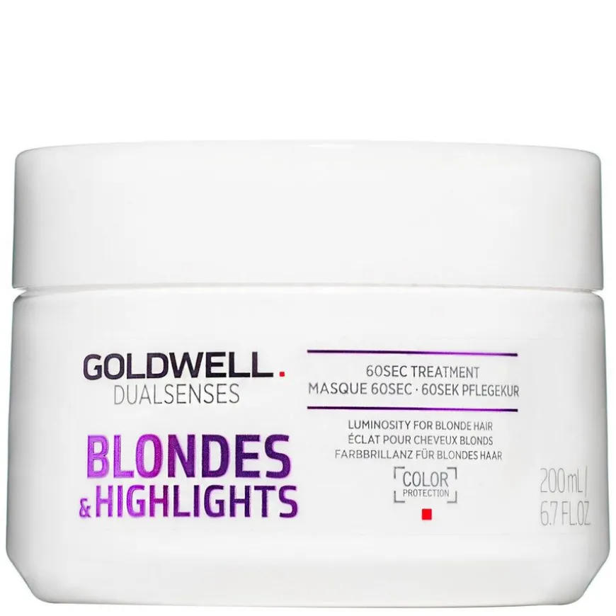 Goldwell DualsensesBlondes & Highlights 60sec Treatment er spesielt egnet for deg med blondt eller stripete hår. På bare 60 sekunder blir håret bygget opp på ny! Håret vil få masse pleie og glød. På bare 60 sekunder vil hårkuren nøytralisere gulskjær og gule toner i blondt hår.