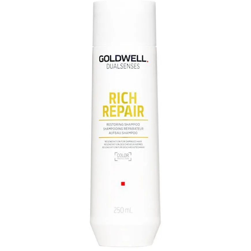 Rich Repair Restoring Shampoo er en nærende og gjenoppbyggende shampoo utviklet for tørt, skadet eller stresset hår. Den skånsomme formelen renser effektivt, samtidig som den tilfører rikelig med pleie og fuktighet uten å tynge håret. Shampooen inneholder dyptvirkende pleiestoffer som jobber for å styrke hårets struktur, redusere slitasje og gjenopprette sunnhet og glans. Samtidig bidrar den til å beskytte håret mot fremtidig skade, slik at det føles mykere, sterkere og mer motstandsdyktig etter hver vask. Ideell for deg som ønsker å gjenopplive tørt og livløst hår, og bevare et sunt og velpleid utseende i hverdagen.