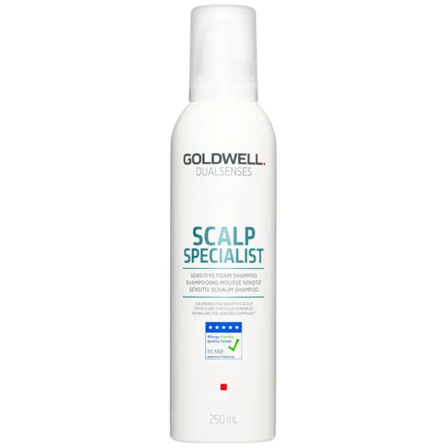 Scalp Specialist Sensitive Foam Shampoo er en ultramild og skummende shampoo utviklet spesielt for deg med sensitiv, tørr eller lett irritert hodebunn. Den renser skånsomt uten å forstyrre hudens naturlige balanse, og inneholder verken farge eller parfyme, noe som gjør den ideell også for de mest følsomme hudtypene. Shampooen beroliger og tilfører fuktighet til hodebunnen, og etterlater håret rent, mykt og behagelig å ha på hodet. Skumformelen gir en mild, men effektiv rengjøring som styrker hodebunnens komfort og velvære over tid. En del av Goldwell Dualsenses Scalp Regulation-serien, som er utviklet for å motvirke problemer som tørrhet, flass og fet hodebunn, og skape et sunt grunnlag for hårvekst.