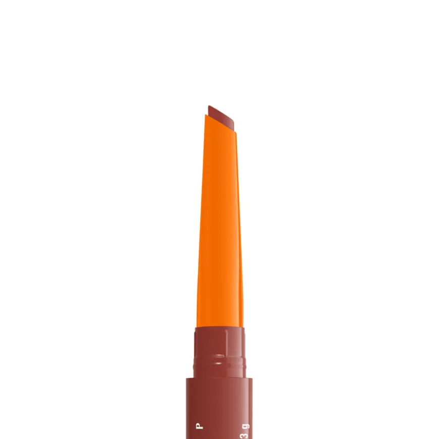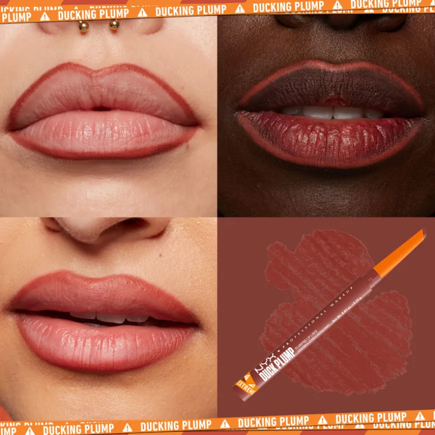 NYX Professional Makeup Duck Plump Lip Liner med skrå spiss for enkel påføring hver gang. Marker leppenes konturer med den spisse enden og fyll deretter inn med den flate enden for å gi leppene dine en perfekt form. Du kan skape akkurat den formen du selv vil ha på leppene. Det er ikke vanskelig! Leppeblyanten gir leppene et fyldigere utseende og fremhever leppenes naturlige form. Formelen er beriket med ingefær og chili akkurat som den populære Duck Plump High Pigment Plumping Gloss.