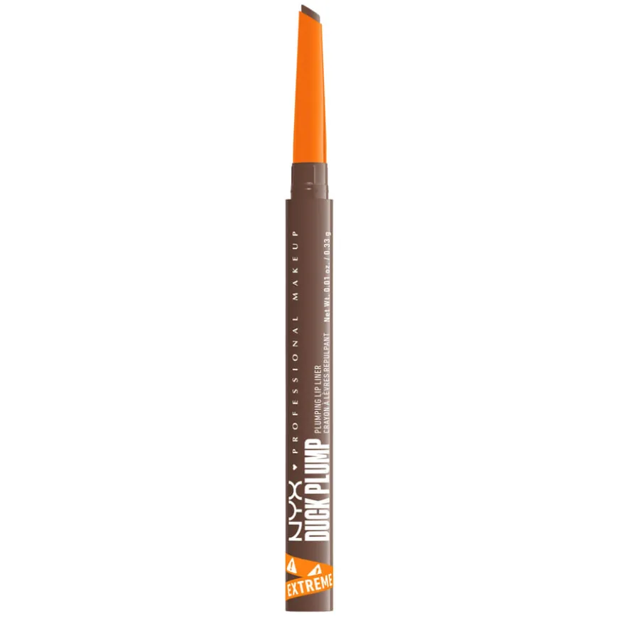 NYX Professional Makeup Duck Plump Lip Liner med skrå spiss for enkel påføring hver gang. Marker leppenes konturer med den spisse enden og fyll deretter inn med den flate enden for å gi leppene dine en perfekt form. Du kan skape akkurat den formen du selv vil ha på leppene. Det er ikke vanskelig! Leppeblyanten gir leppene et fyldigere utseende og fremhever leppenes naturlige form. Formelen er beriket med ingefær og chili akkurat som den populære Duck Plump High Pigment Plumping Gloss.