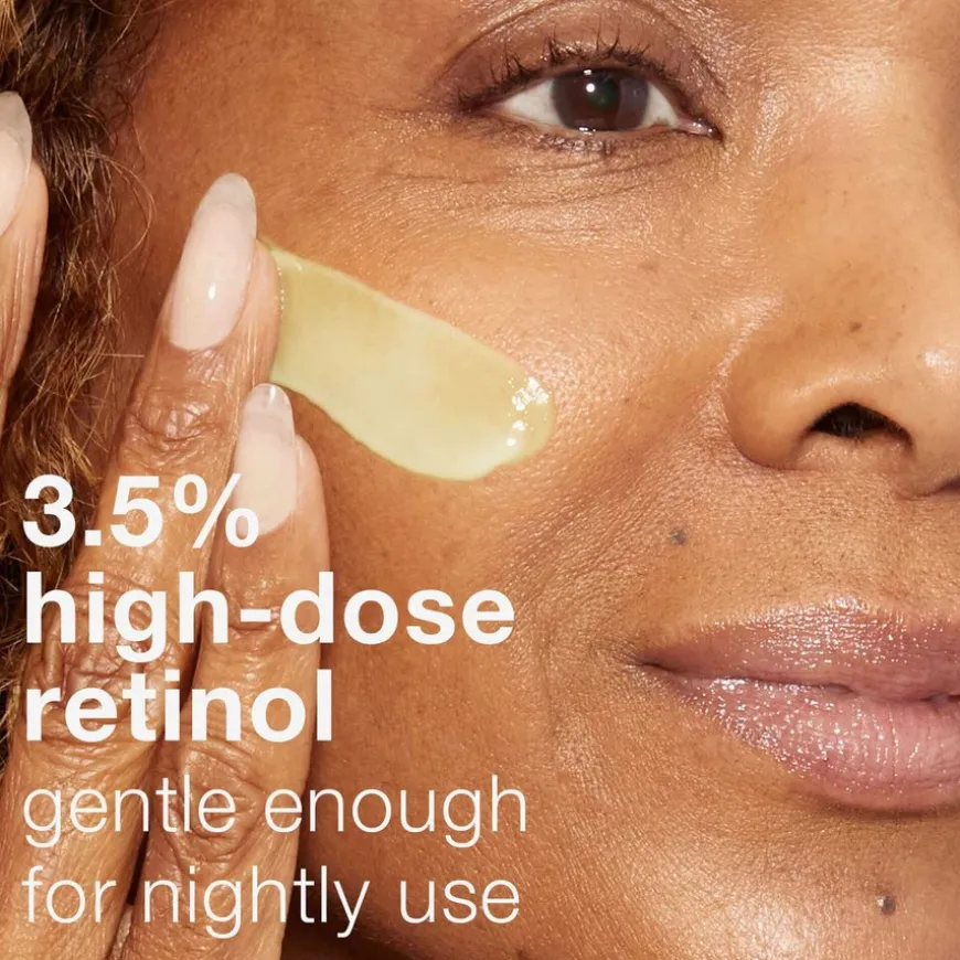 Høydosert retinol-serum som reduserer tegn på aldring etter kun 2 uker*. Serumet er utviklet med 3,5 % retinolkompleks som inneholder flere typer retinoider: effektive Granactive Retinoid ®, retinol, innkapslet retinol som aktiveres over tid og en retinol-booster som sammen bidrar til å redusere tegn på aldring. I tillegg vil fuktighetsgivende squalen og lindrende betaglukan styrke hudens reparasjonsprosess for en sunn og frisk hud.