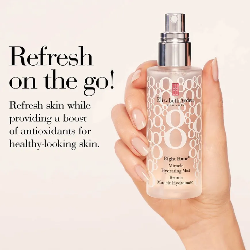 Elizabeth Arden Eight Hour Miracle Hydrating Mist ettelater huden styrket og sunn. Misten inneholder antioksidanter og beroligende ekstrakter som vil kjøle ned og berolige huden. Misten vil også gi deg masse fukt!
