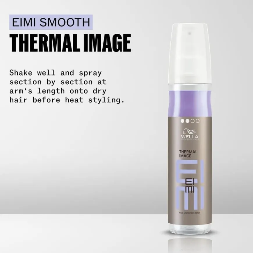 Wella Professionals EIMI Thermal Image Heat Protection Spray er en profesjonell hårspray som er utviklet for å beskytte håret mot varmeverktøy under styling og føning. EIMI Thermal Image gir varmebeskyttelse opptil 220 °C samtidig som den pleier, fukter og gjør håret mykt. Thermal Image har en fruktig duft og hold på nivå 2, lett.