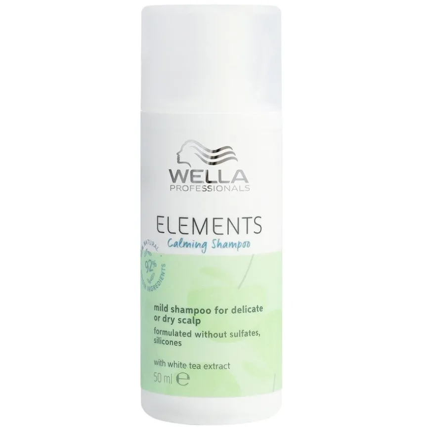 Wella Professionals Elements Calming Shampoo er en mild shampoo for sensitiv eller tørr hodebunn. Denne milde og beroligende shampoo pleier skånsomt hår og hodebunn. Elements Calming Shampoo er utviklet uten sulfater og silikoner og inneholder opptil 92 % ingredienser av naturlig opprinnelse.