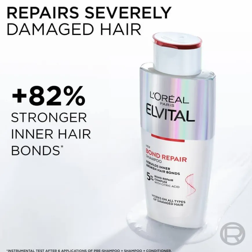 Elvital Bond Repair Rescue Shampoo er en shampoo til alle typer skadet hår. Denne hjemmebehandlingen gjenoppbygger bindinger i hårets struktur og reparerer hårstrået fra skjellag til cortex**. Et hårstrå er bygget opp av millioner av bindinger som gir det struktur og styrke. Når vi belaster håret ved børsting, bleking, bruk av varmeredskaper og farging blir hårstrået svakere og skades fordi bindingene sprekker. Formelen i Bond Repair-serien fra Elvital er beriket med sitronsyre og trenger inn under skjellaget til hårets cortex for å bidra med å styrke og gjenoppbygge skadde hårbindinger. Vi anbefaler å bruke hele Bond Repair-rutinen for et optimalt resultat.