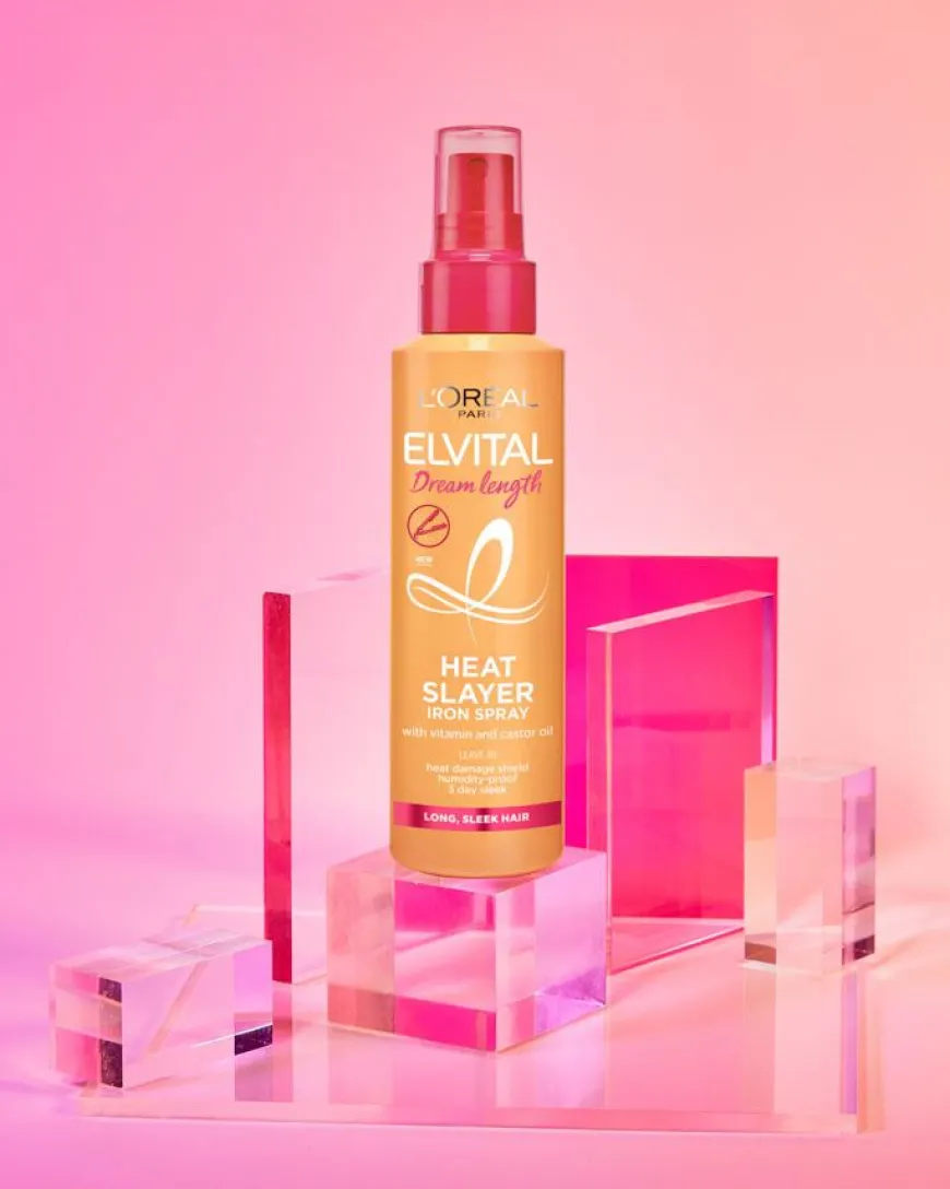 Elvital Dream Lenght Heat Slayerer en varmebeskyttende spray. Heat Slayer Iron Spray gir 3 dager med glatt hår* og 230°C varmebeskyttelse*.