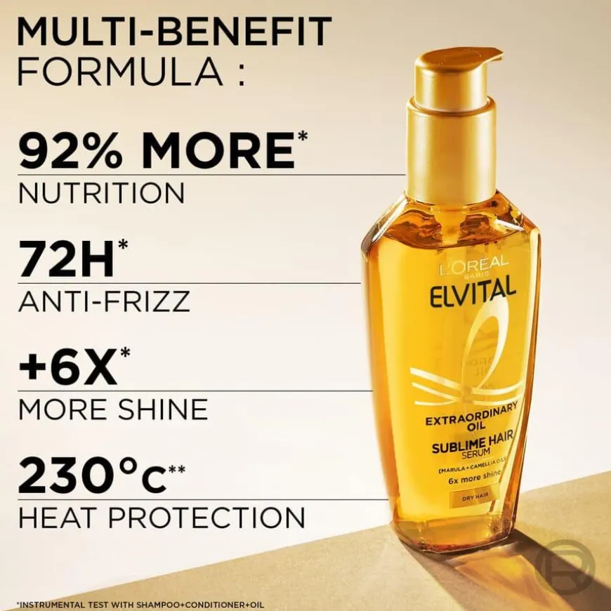 L’Oréal Paris Elvital Extraordinary Oil for tørt hår passer alle hårtyper og anledninger. La deg forføre av denne velduftende oljen – den er mer enn bare en pleiende olje, det er en daglig skjønnhetsolje! Med en unik blanding av seks blomsterekstrakter, gir silkemykt og glansfullt hår uten å tynge det ned. Trykk 1–2 ganger på pumpen og fordel i lengder og spisser. Bruk oljen før shampoo som en pleiende kur, i tørt hår før styling, eller som en siste finish for strålende glans. Opplev en ekstraordinær hårforvandling med Elvital Extraordinary Oil. Stjernen i denne serien er Extraordinary Oil hårserum, som finnes både til normalt og farget hår. Den herlige, fyldige formelen temmer krus og flyvehår.