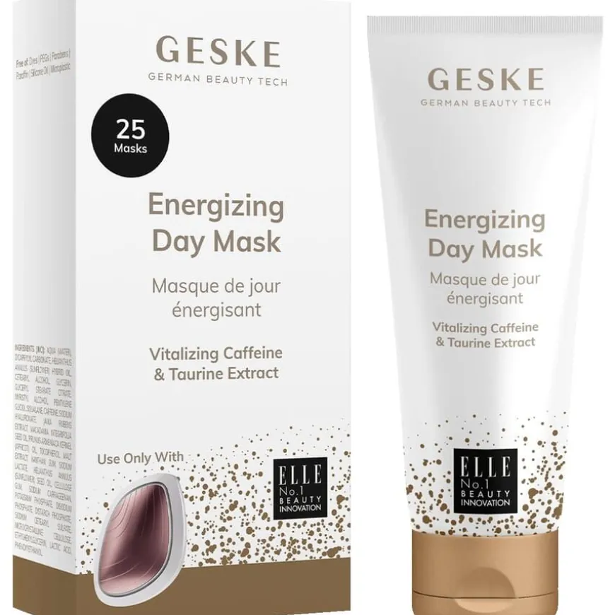 Energizing Day Mask er en fuktighetsgivende og revitaliserende ansiktsmaske som bekjemper tegn på aldring og gir huden ny energi. Masken inneholder koffein som virker avgiftende og beskytter mot frie radikaler, squalan med antioksidantegenskaper som styrker hudens fuktbarriere, og macadamianøtteolje som gir næring og støtter regenerering av tørr og stresset hud. Masken passer spesielt godt for sliten, livløs og tørr hud, og gir en jevnere, mer glødende hudtone. Kombineres ideelt med GESKEs SmartAppGuided™ skjønnhetsenheter for optimal effekt.