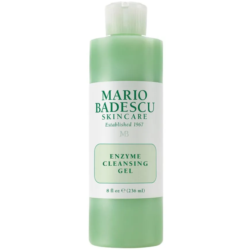 Mario Badescu Enzyme Cleansing Gel er en lett og forfriskende rengjøringsgel som effektivt fjerner sminke, smuss og fett uten å tørke ut huden. Denne forfriskende rensegelen inneholder enzymer (i papayaekstrakten) og AHA-er (i grapefruktekstrakt), fjerner skånsomt døde hudceller og gir deg en klar hud med fin glød.
