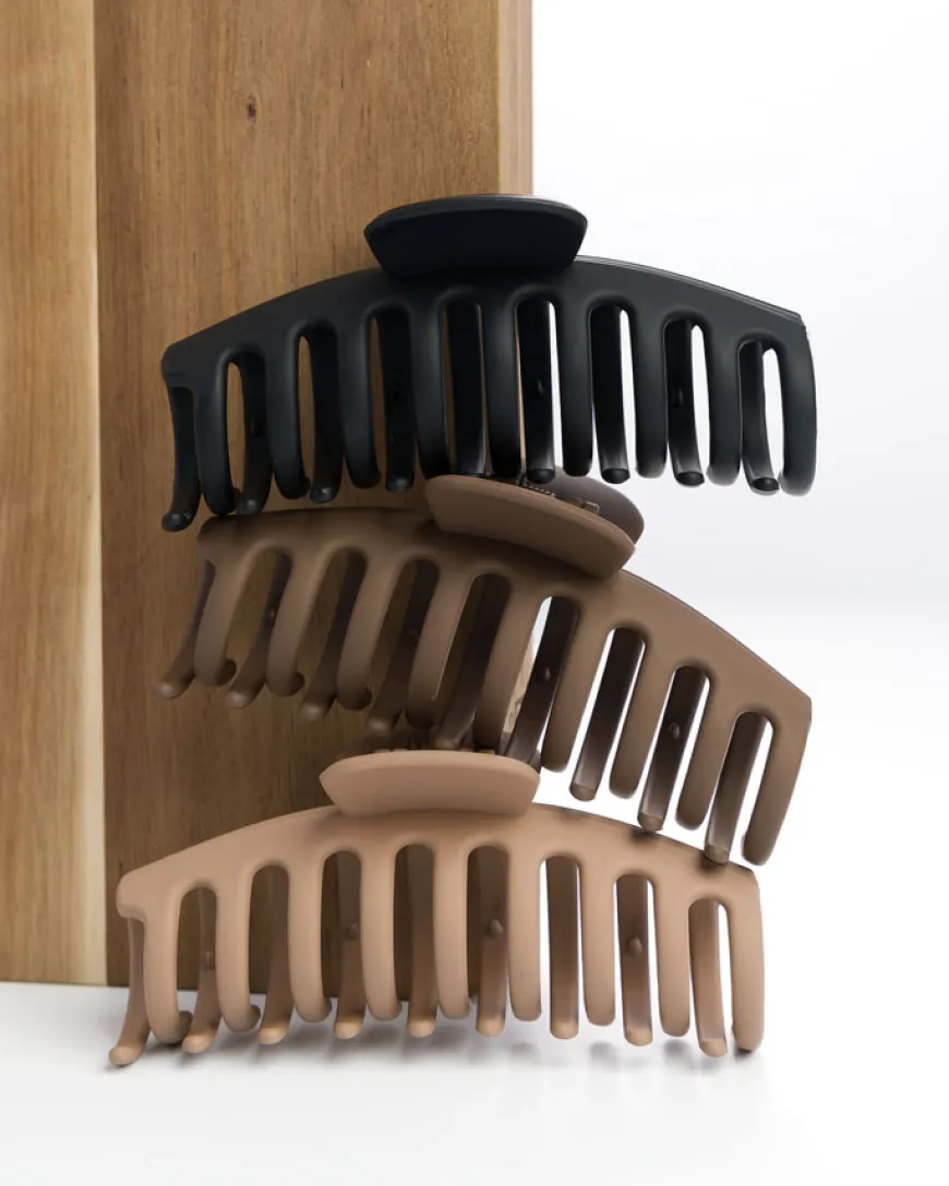 So Eco Essential Claw Clips kombinerer stil og bærekraft i én praktisk hårtilbehørspakke. Disse holdbare klipsene er laget av over 50 % resirkulerte materialer og gir et sikkert, skånsomt grep uten å skade håret. Med en nøytral fargepalett passer de til enhver anledning – enten det er en uformell dag eller en elegant kveld.
