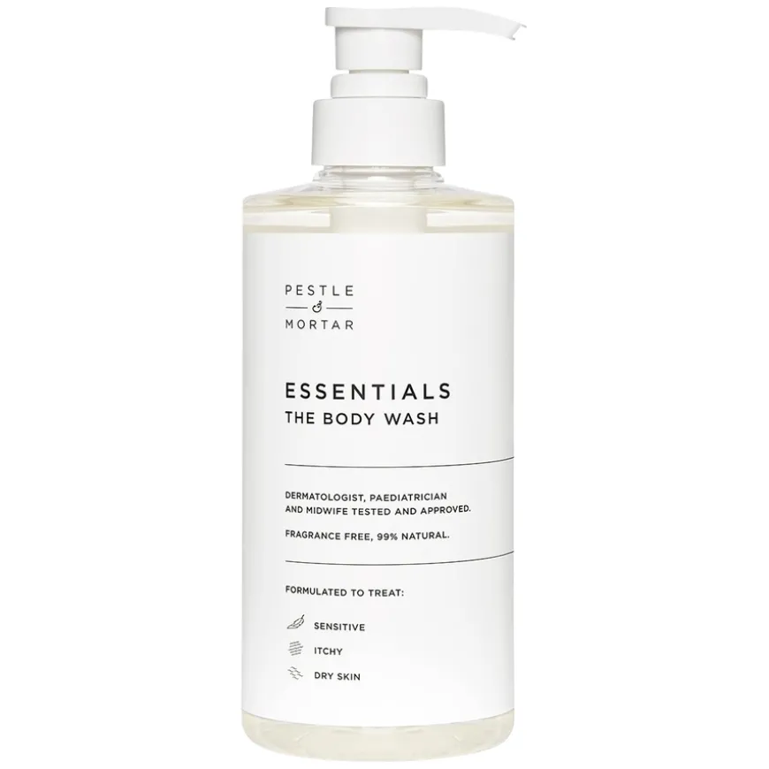 Essentials Body Wash er en klinisk formulert, ikke-skummende dusjsåpe utviklet for skånsom daglig rens av hele kroppen – trygg for både barn og voksne. Den inneholder havrekjerneekstrakt og vitamin E som beroliger, beskytter og mykgjør huden, uten å tørke den ut. Perfekt for sensitiv, tørr eller eksemutsatt hud, og velegnet til hele familien. Den milde formelen bevarer hudens naturlige balanse og etterlater den ren, rolig og komfortabel.
