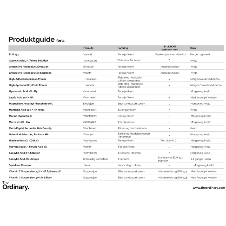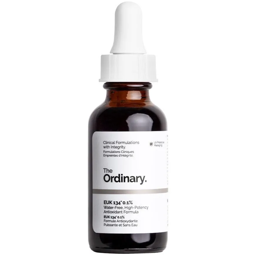 Blant antioksidantene i The Ordinary finnes også Resveratrol 3% + Ferulic Acid 3%. Hvis du ønsker å bruke begge produktene: bruk de til ulike tider eller påfør de i separate steg ettersom syrer og EUK 134 ikke skal blandes sammen. EUK 134 kan blandes med produkter som Natural Moisturizing Factors + HA for å tilføre kraftfulle antioksidanter.