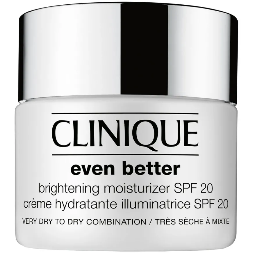 Clinique Even Better Clinical Brightening Moisturizer SPF20 er en fuktighetskrem som skaper en mer jevn hudtone samt gir UVA- og UVB-beskyttelse. Beroligende oljefri krem med spesielt utvalgte ingredienser som løser opp mørke felt i overflaten og eksfolierer dem bort. SPF bidrar til å forhindre nye skader. Lysner huden umiddelbart. Brukes daglig for en jevnere hudtone. Har du kombinert eller fet hud? Prøv Even Better™ Skin Tone Correcting Lotion Broad Spectrum SPF20.
