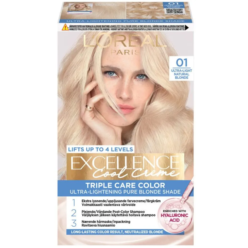 L’Oréal Paris Excellence Crème er en permanent hårfarge for deg som ønsker å dekke grå hår og samtidig beskytte håret mens det farges. Excellence Crème tilbyr klassiske og elegante farger som gir et vakkert fargeresultat som holder lenge. Triple Care Color-ritualet består av tre trinn for å styrke og beskytte håret samtidig som det farges. Formel beriket med hyaluronsyre for 10x mer fukt** og en 2x fyldigere fargeblanding slik at den ikke drypper når du påfører. Dekker grå hår opptil 100 % og passer til alle hårtyper.