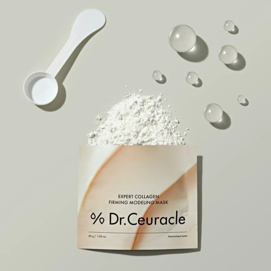 Dr.Ceuracle Expert Collagen Firming Modeling Mask er en oppstrammende og fuktighetsgivende modellermaske som bidrar til å gi huden et jevnere og fastere uttrykk. Masken blandes med vann og danner en myk, tettende gelemasse som legger seg som et fleksibelt lag over huden og forhindrer fuktighetstap under virketiden. Produktet er en modellermaske som kombinerer hydrolysert kollagen og algeekstrakt for å støtte hudens fuktighet og elastisitet. Den bidrar til å jevne ut hudoverflaten og gi en fastere hudfølelse. Masken skaper en mild okklusiv effekt som forbedrer opptaket av aktive ingredienser. Hovedingrediensene inkluderer hydrolysert kollagen, som intensivt fukter og forbedrer hudens tekstur, og algeekstrakt, som gir næring og bidrar til hudens elastisitet. Masken er egnet for alle hudtyper, spesielt for de som opplever slapp, tørr eller ujevn hud. Produktet er uten parfyme og passer derfor også for sensitiv hud.