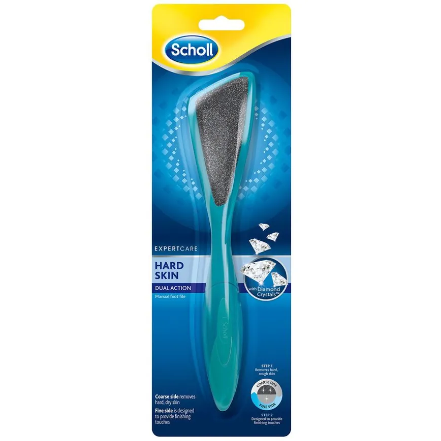 Expertcare Dual Action Hard Skin er en fotfil er en dobbeltvirkende fotfil med to forskjellige slipesider. Fotfilen har en grov og en fin side med Diamond teknologi for økt effekt og presisjon. Bruk første den grove siden for å effektivt fjerne den harde huden. Finpuss med den fine siden for å få en ekstra myk hud etter bruk.