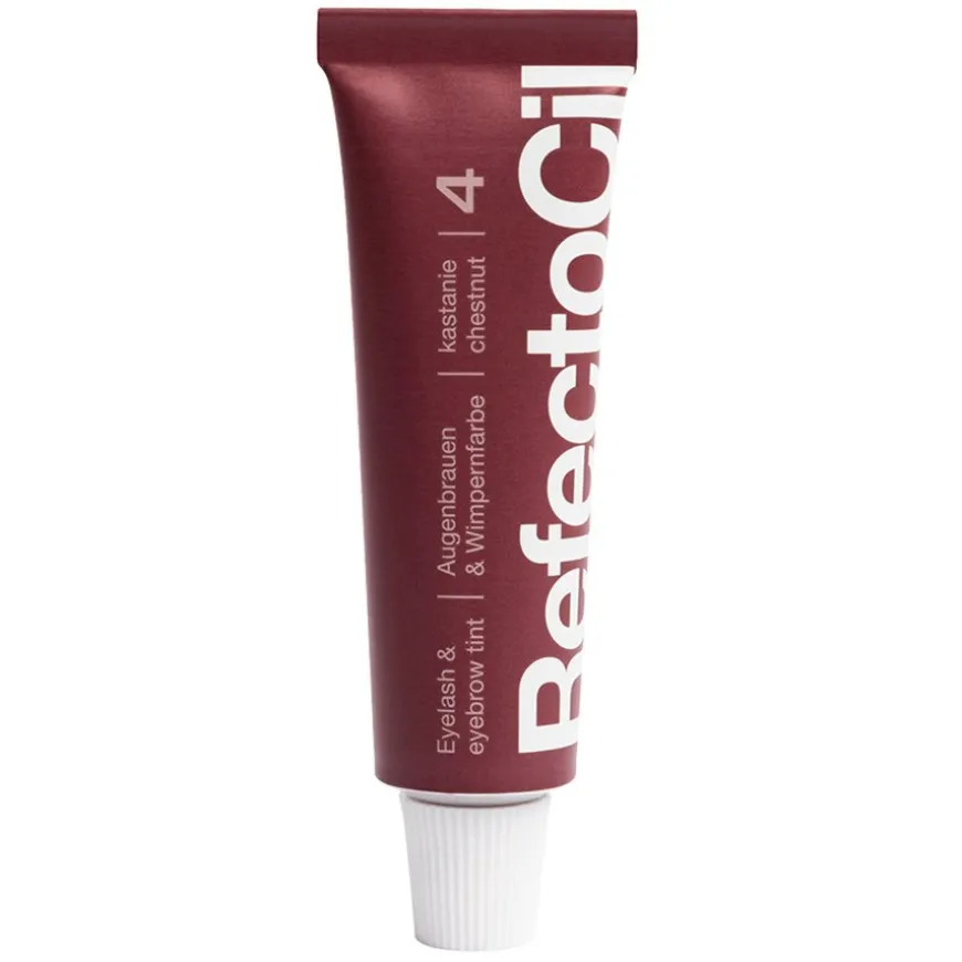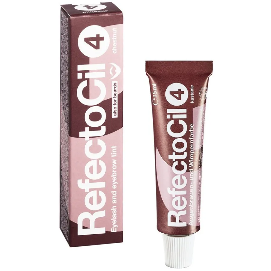 RefectoCil Eyelash & Eyebrow Tint No. 4 Chestnut gir farge, dybde samt glans til vipper og bryn. Fargen Chestnutgir vipper og bryn en varm, brun skygge med subtile røde toner, og gir din stil et karismatisk ekstra touch!Kan blandes med alle de åtte RefectoCil-fargene for en varmere fargetone. Vannfast, renner ikke. Fargen holder i opp til 6 uker.