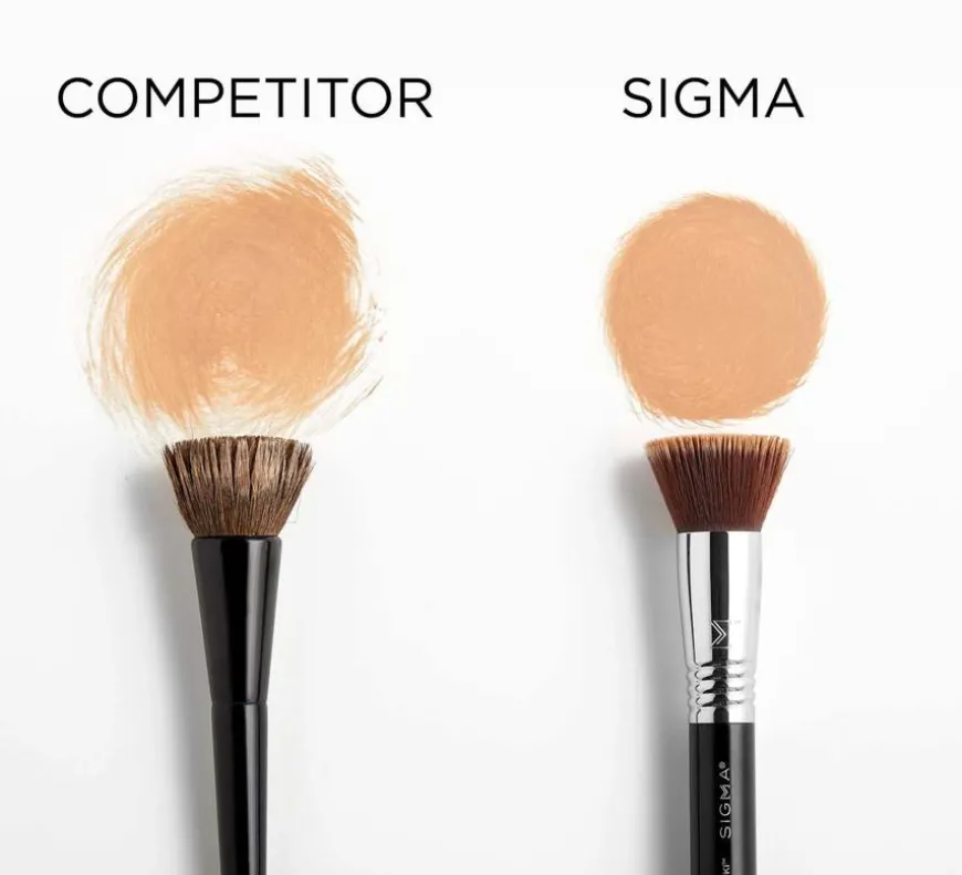 Denne sminkekosten har et flatt børstehode med svært myke og tette Sigmax fibre som gjør at produktet ikke absorberes inn i kosten. Med denne kosten bli påføringen av foundation feilfri og jevn.