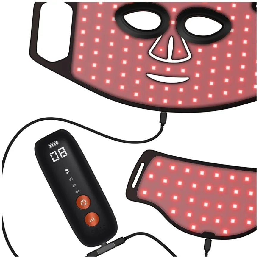 - To LED-masker for som dekker ansikt og nakke med LED-lys og nær-infrarød teknologi.